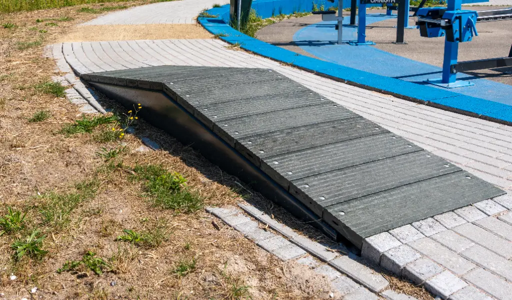 Our new course elements have been developed for urban biking and pump tracks in public spaces. They are sturdy, low-maintenance and made from recycled artificial grass with a sturdy, powder-coated steel frame. Splinter-free, UV-resistant and fully recyclable.