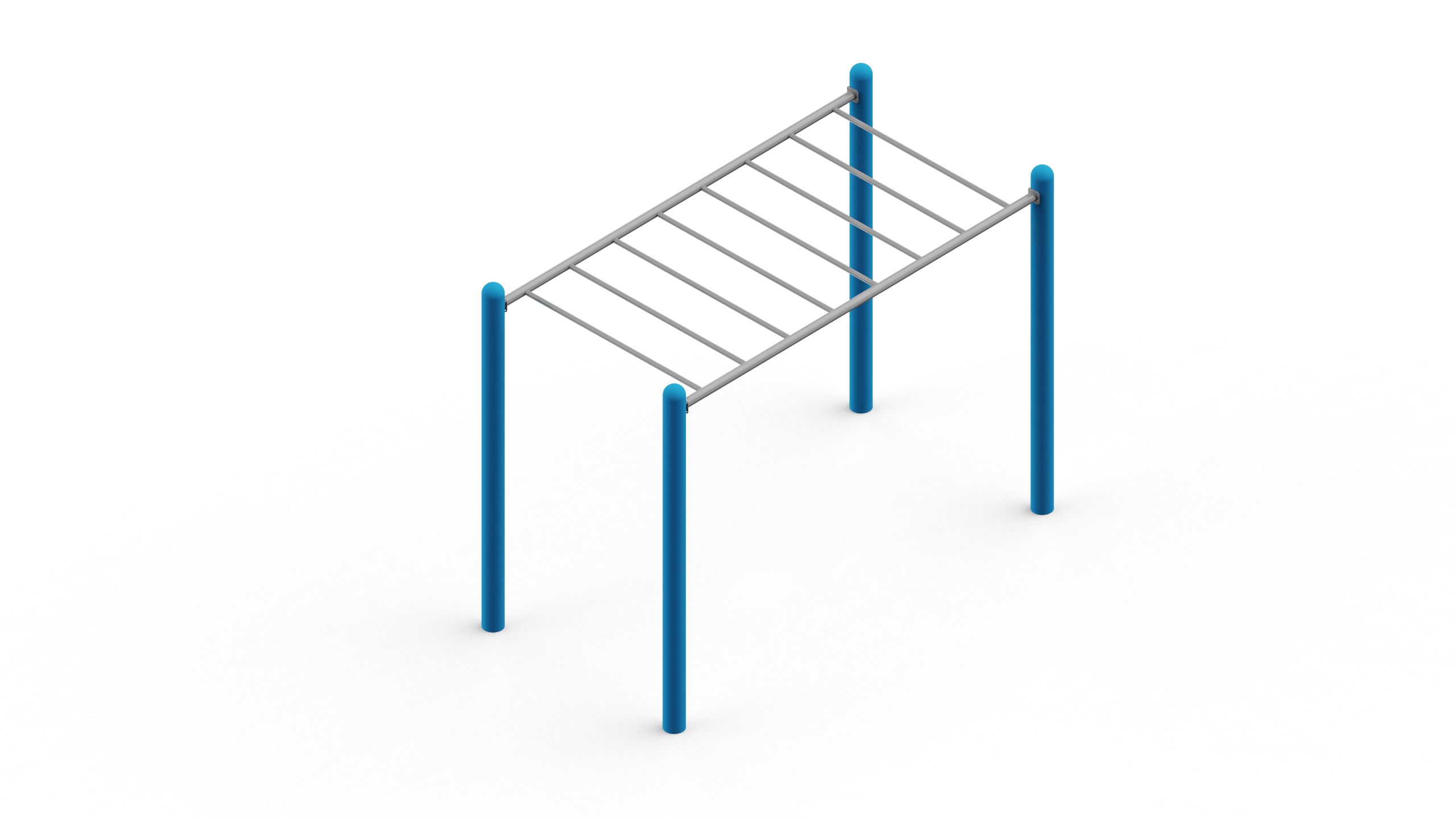 The ArcFit line from CustomBars features versatile outdoor fitness equipment, including the Monkey Bar, which can be connected to create a fitness course. Fixed configurations are available, but a custom course can also be designed. The poles come in four different colors: blue, red, yellow, and green.