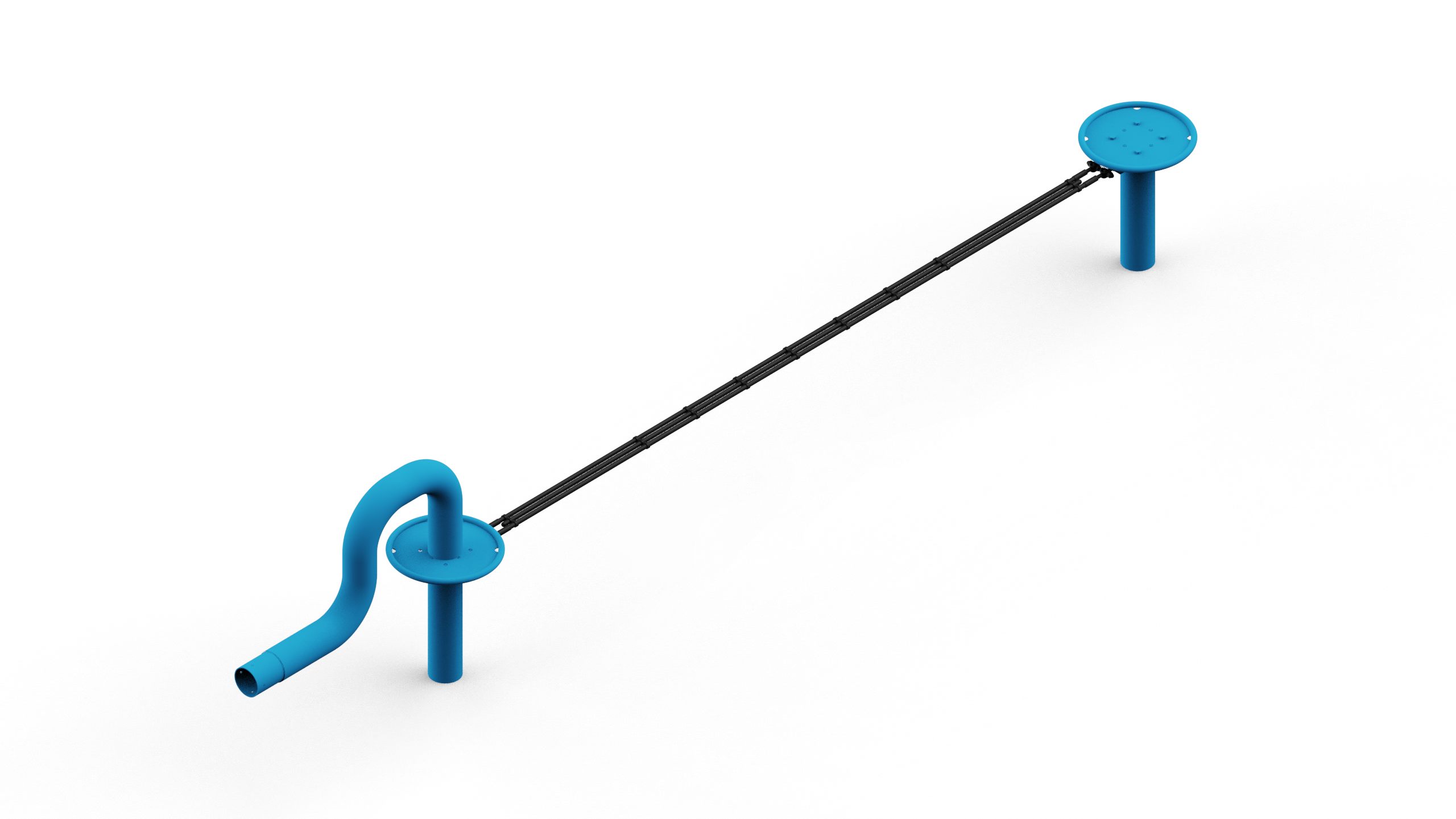 The ArcFit line from CustomBars features versatile outdoor fitness equipment, including the Slackline, which can be connected to create a fitness course. Fixed configurations are available, but a custom course can also be designed. The poles come in four different colors: blue, red, yellow, and green.