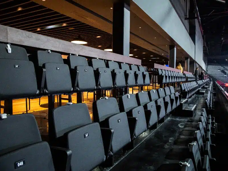 Business seat SITTEM suite. Volledig beklede seat met (op)klapbare zitting die op een rail voor vloer- of wandmontage kan worden geplaatst. De business seat kan optioneel voorzien worden van armleuningen, cupholders en stoelnummering. In diverse kleuren en uitvoeringen leverbaar.